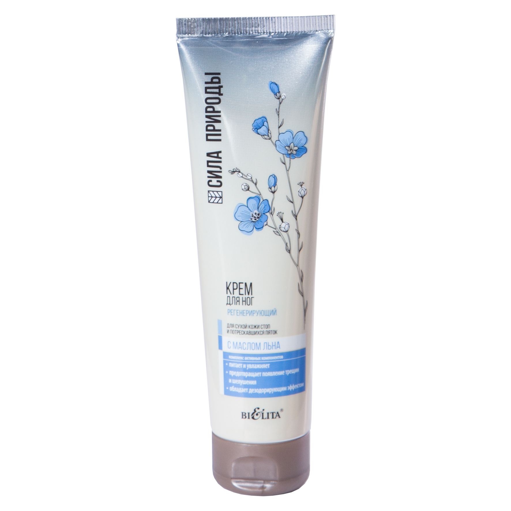 Льняное масло богато витаминами A, E и полиненасыщенными жирными кислотами Омега-3 и Омега-6, которые способствуют интенсивному смягчению и восстановлению кожи стоп.